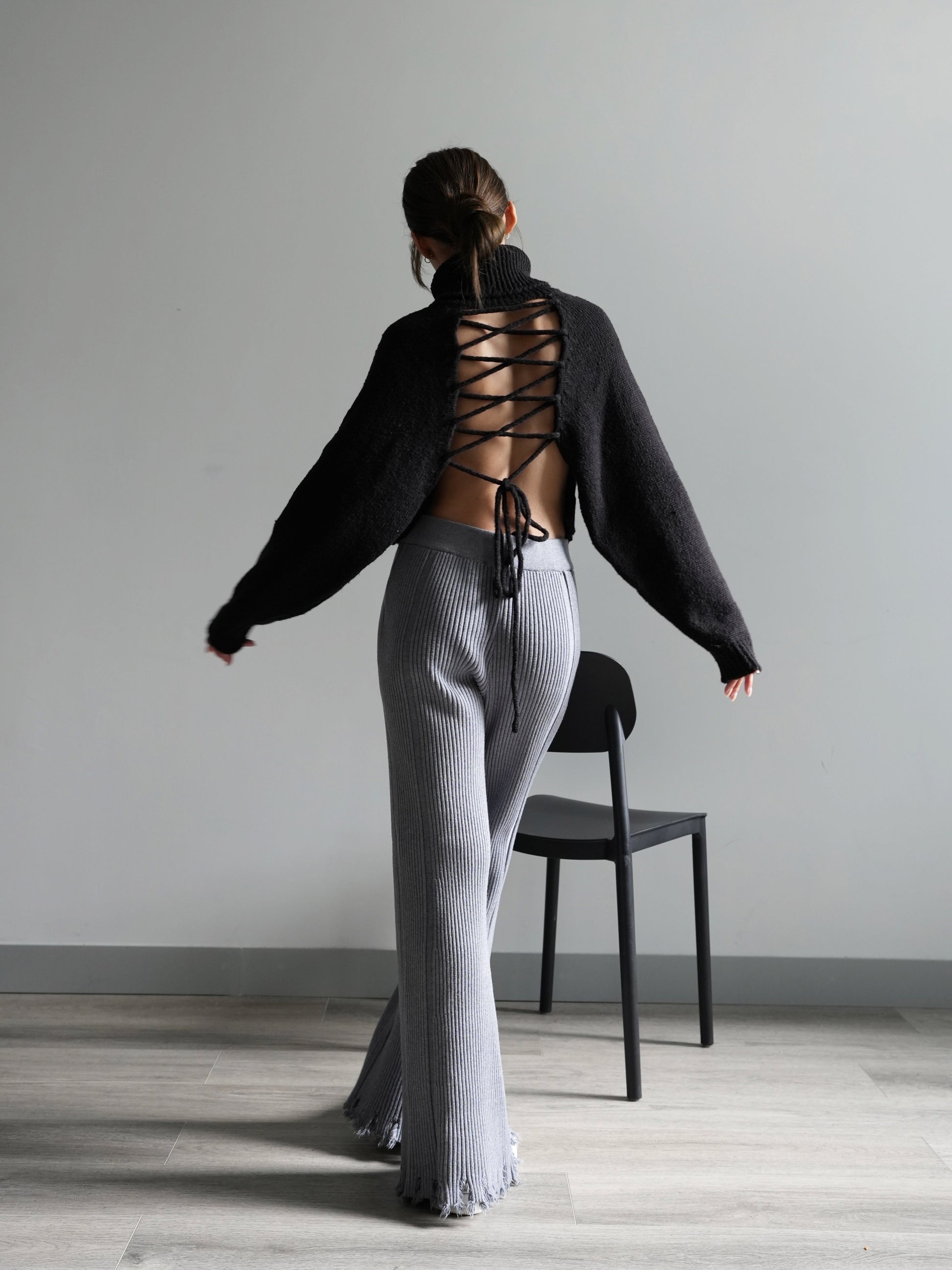 Backless lace up sweater