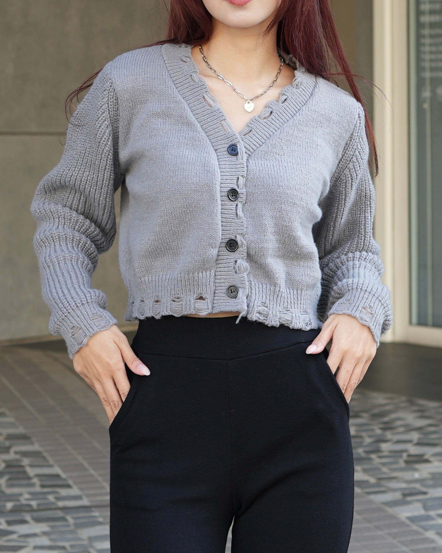 Distressed cropped cardigan