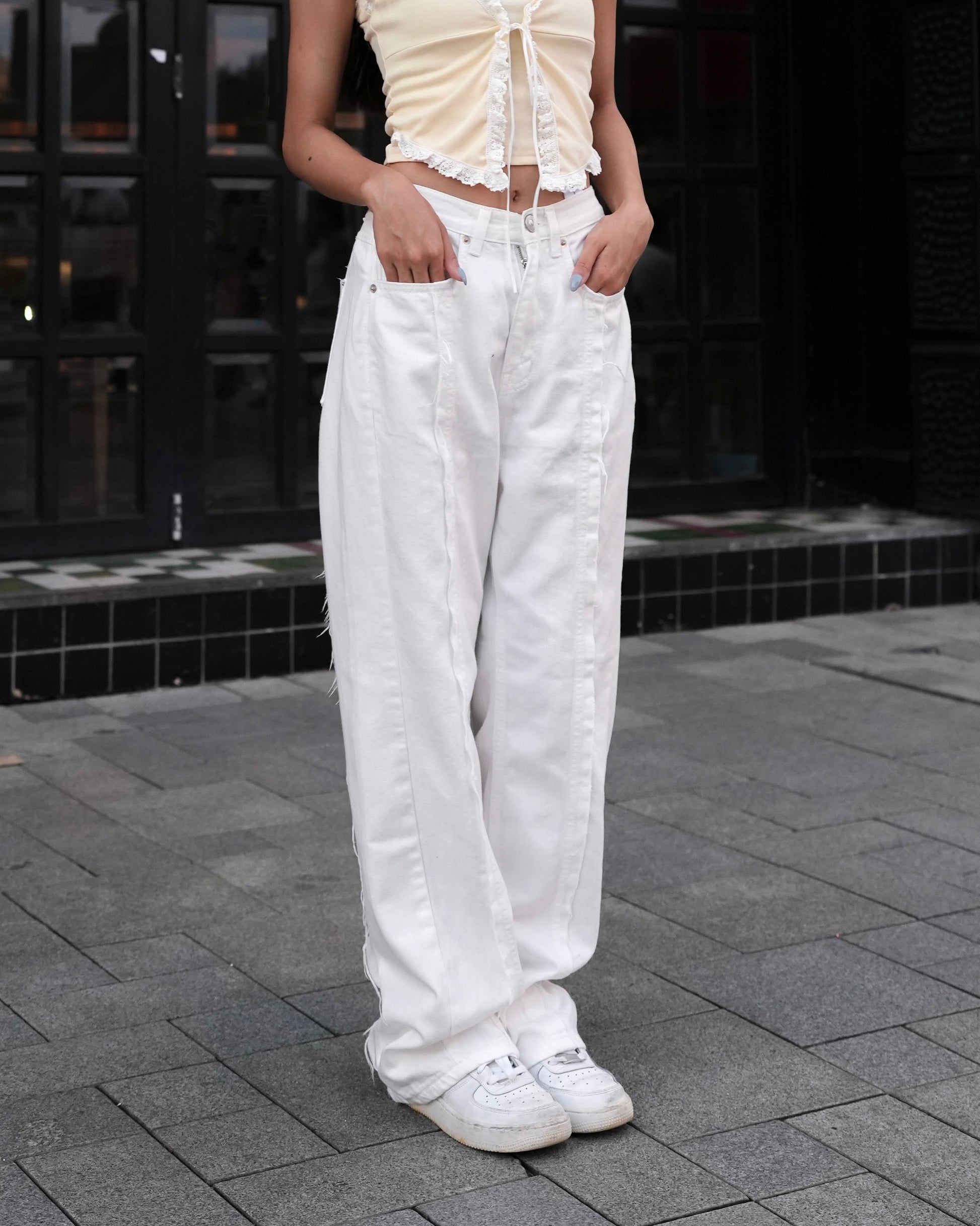 Frayed seam detail jeans