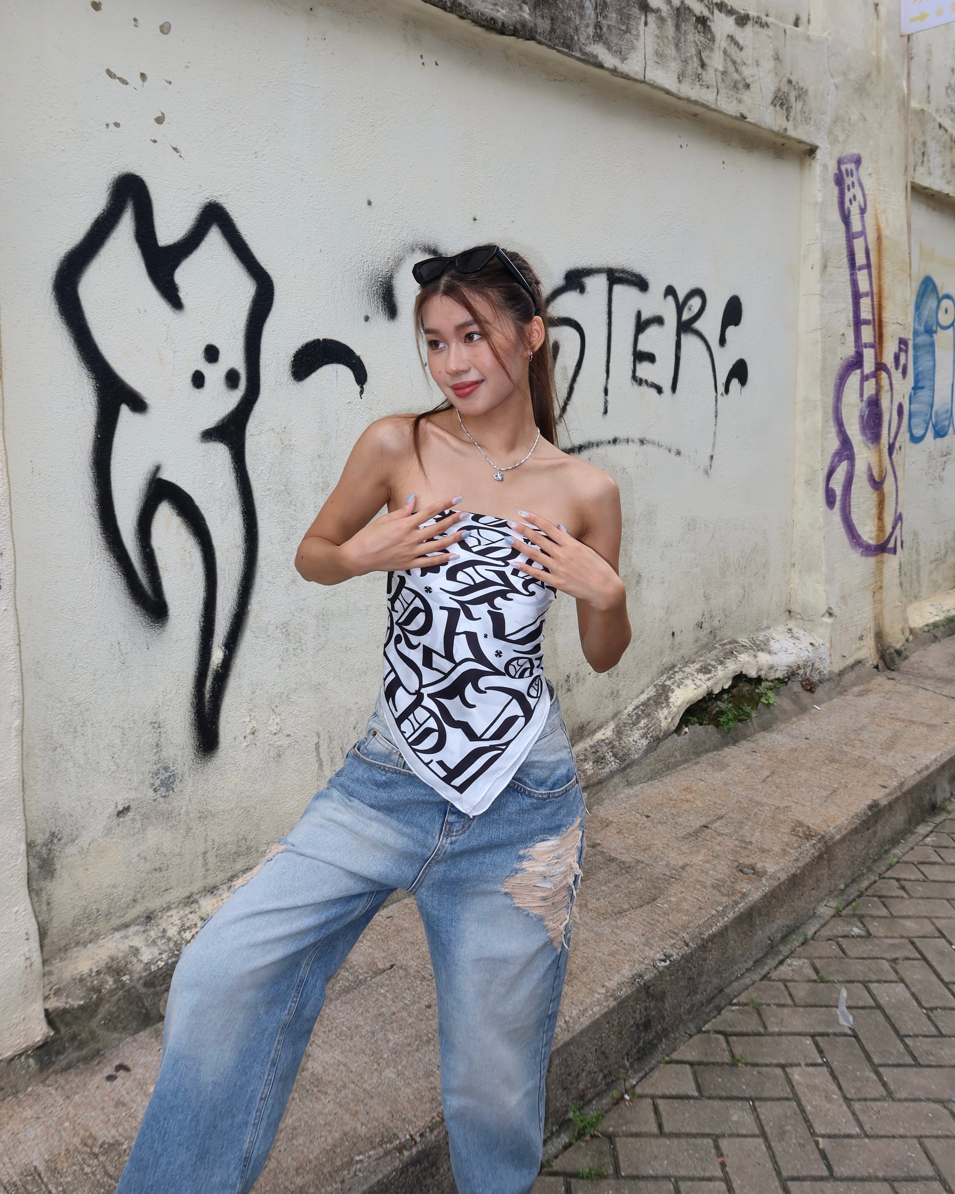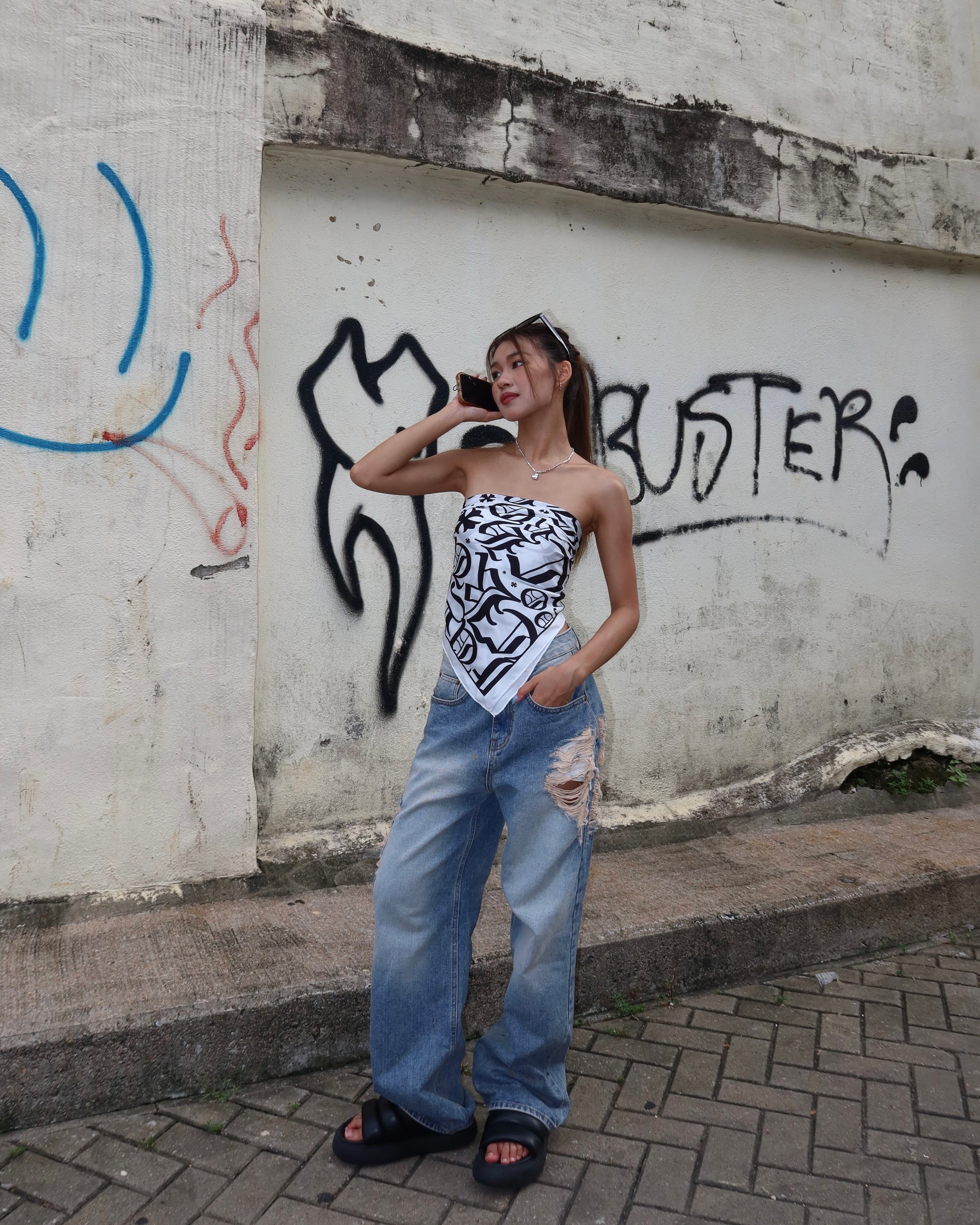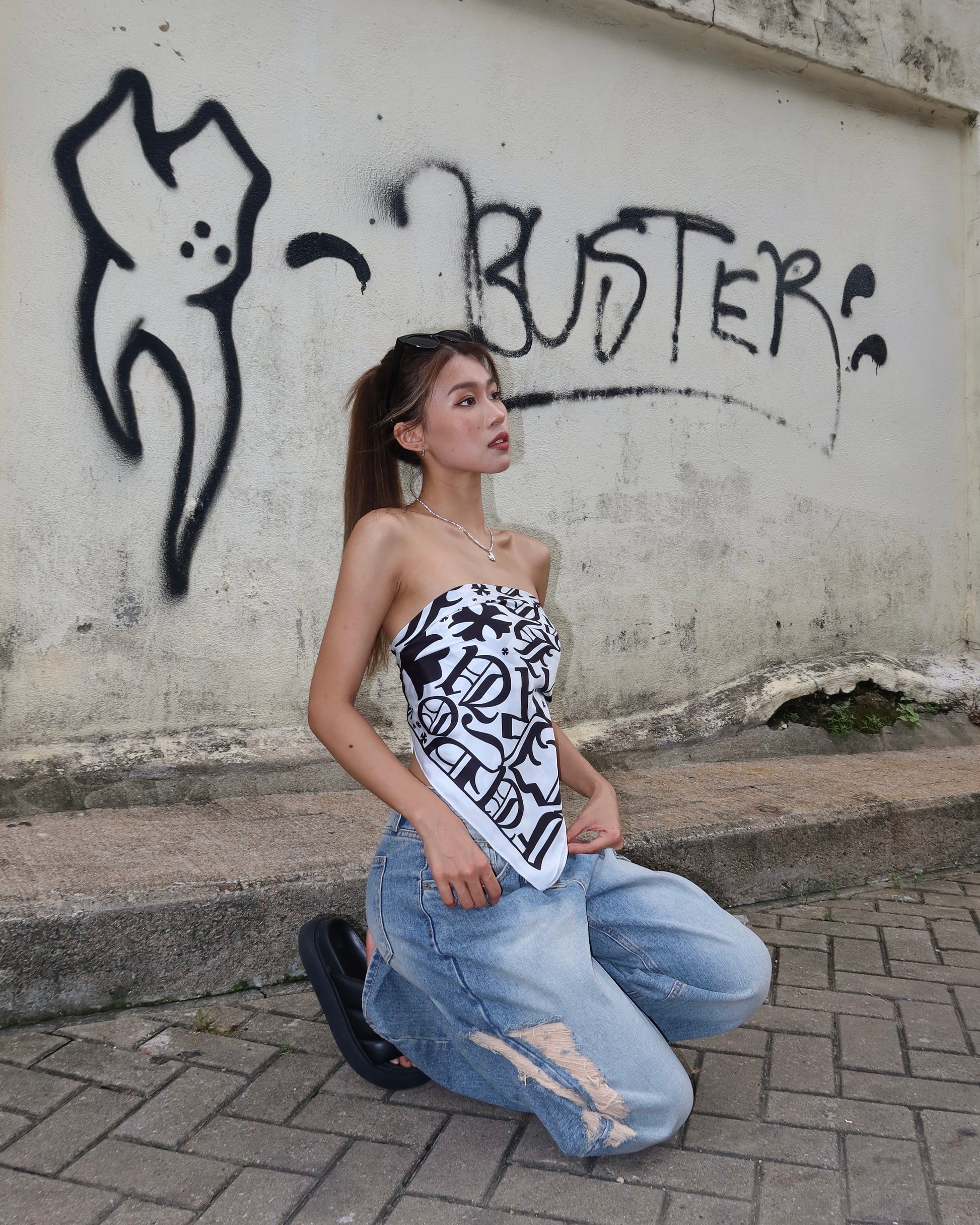 Multiway text print square scarf