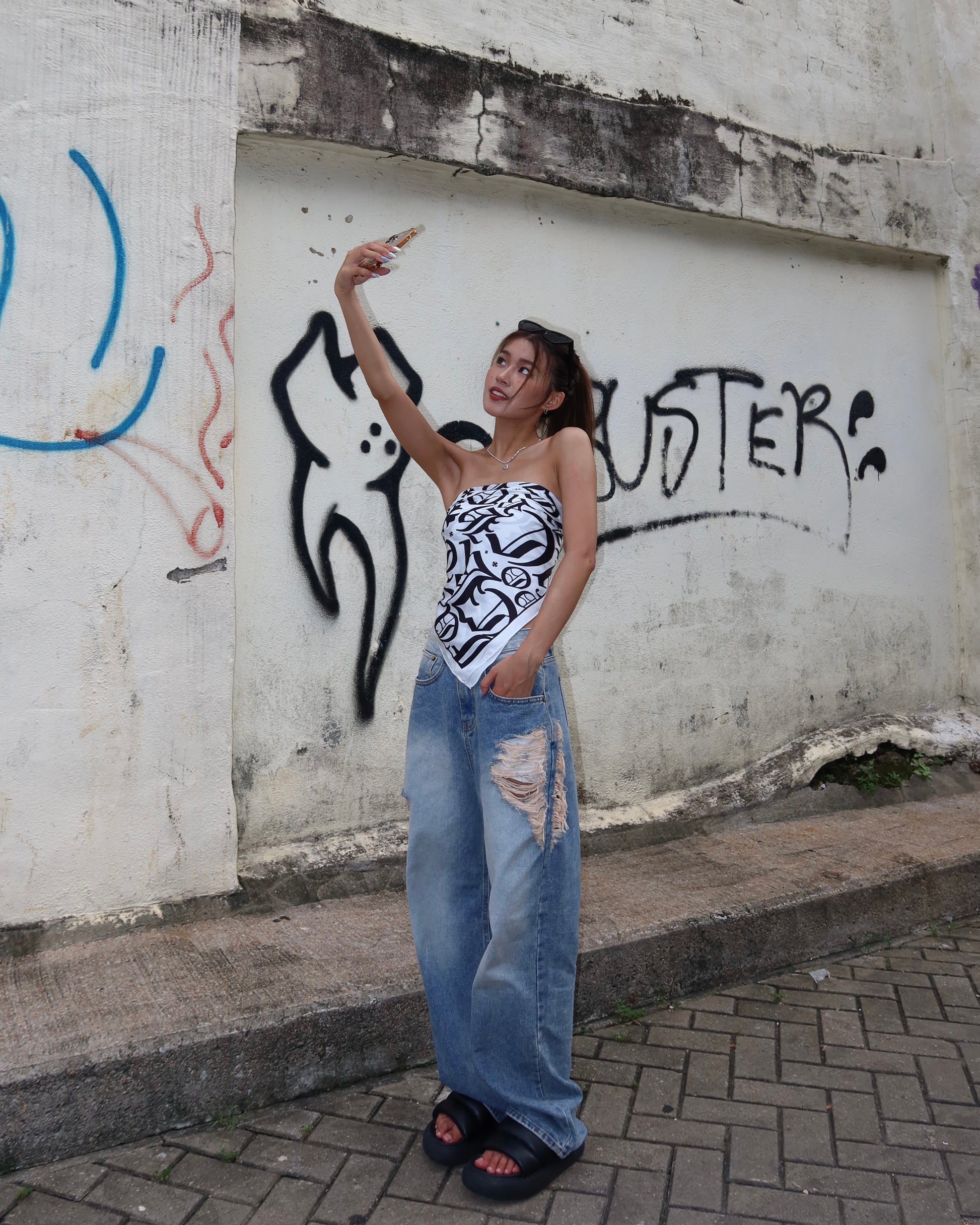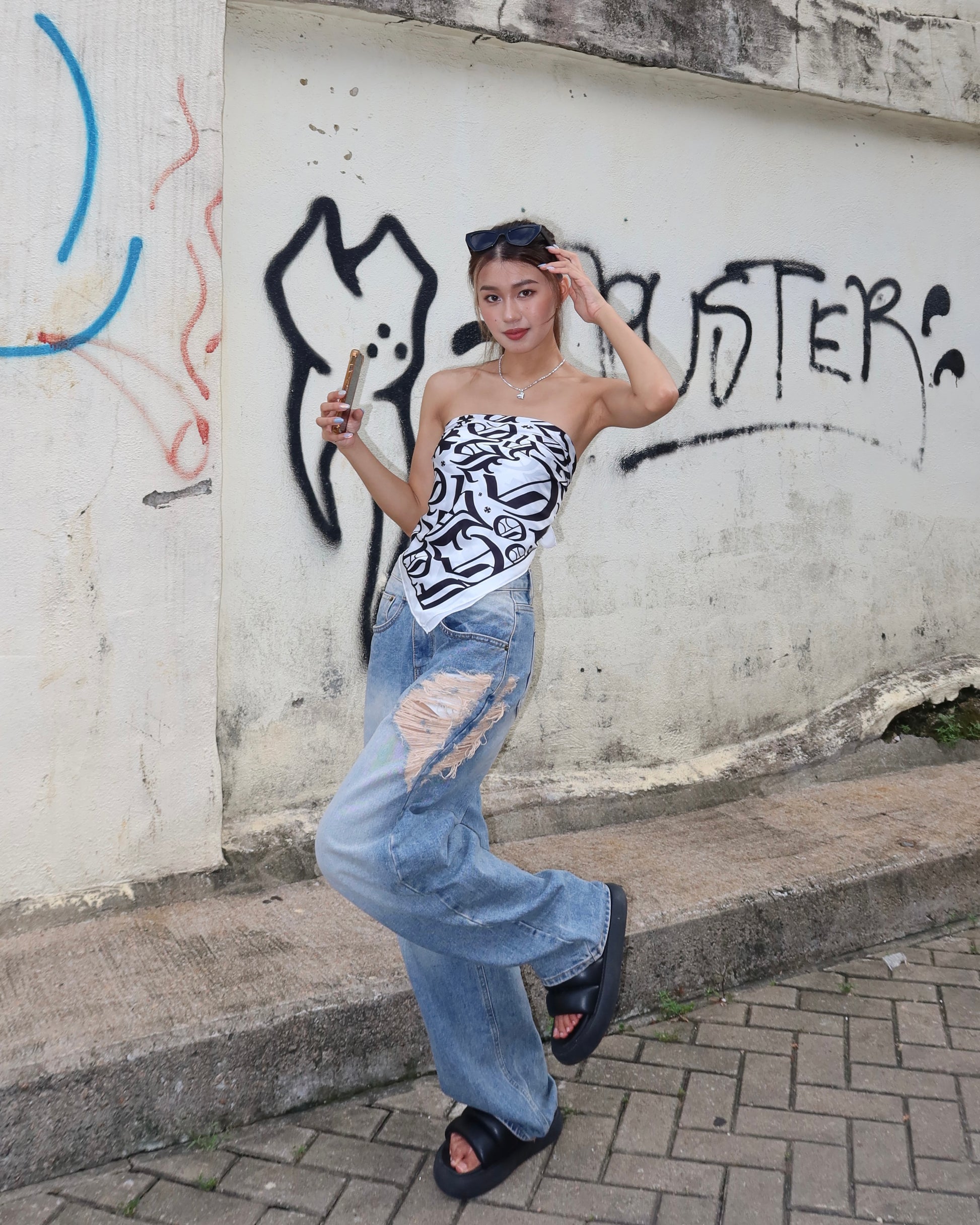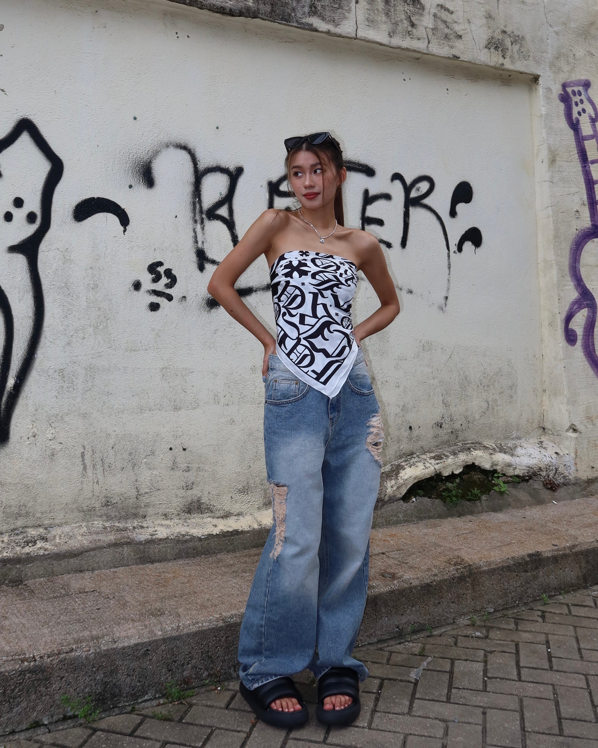 Multiway text print square scarf
