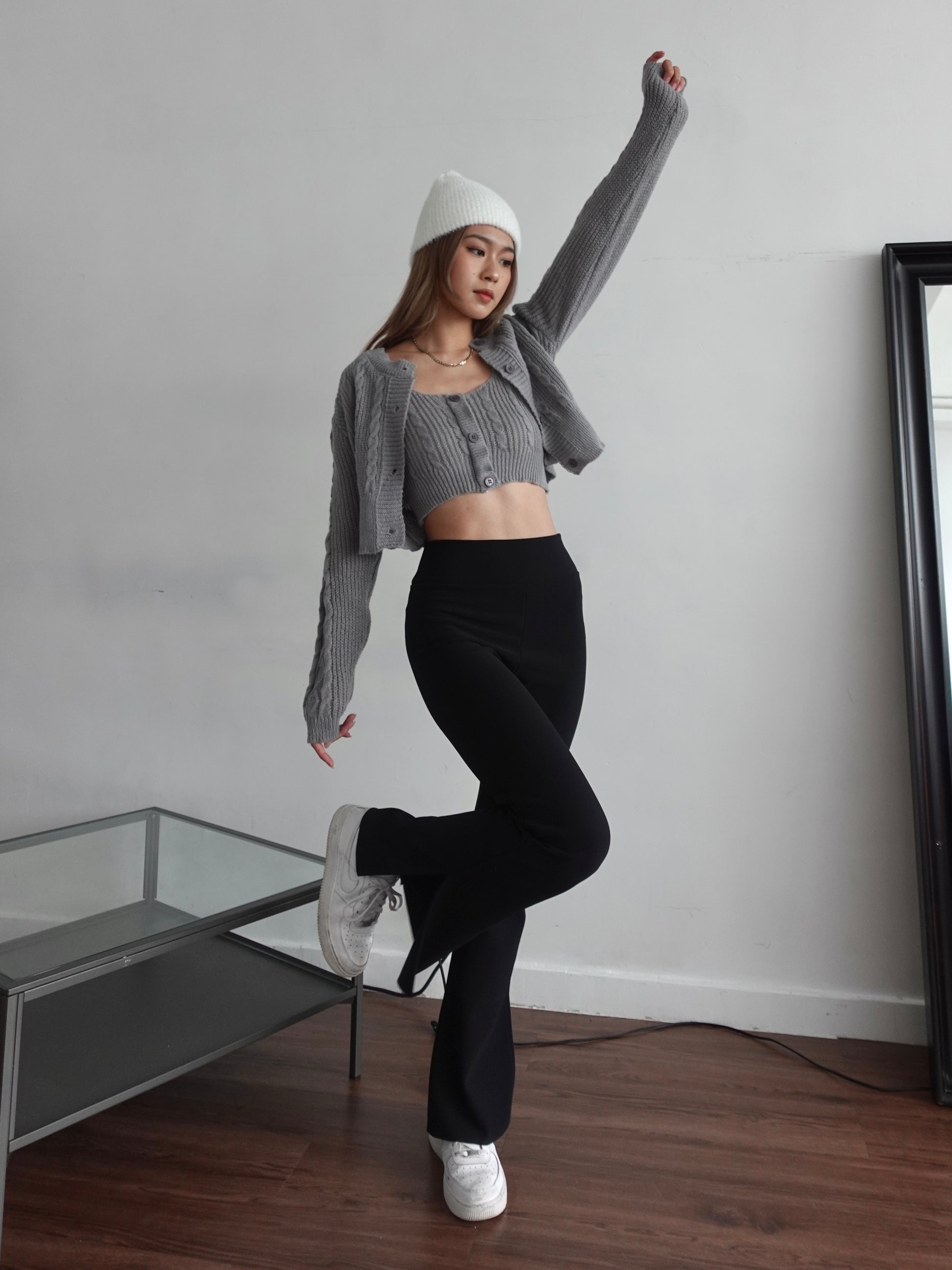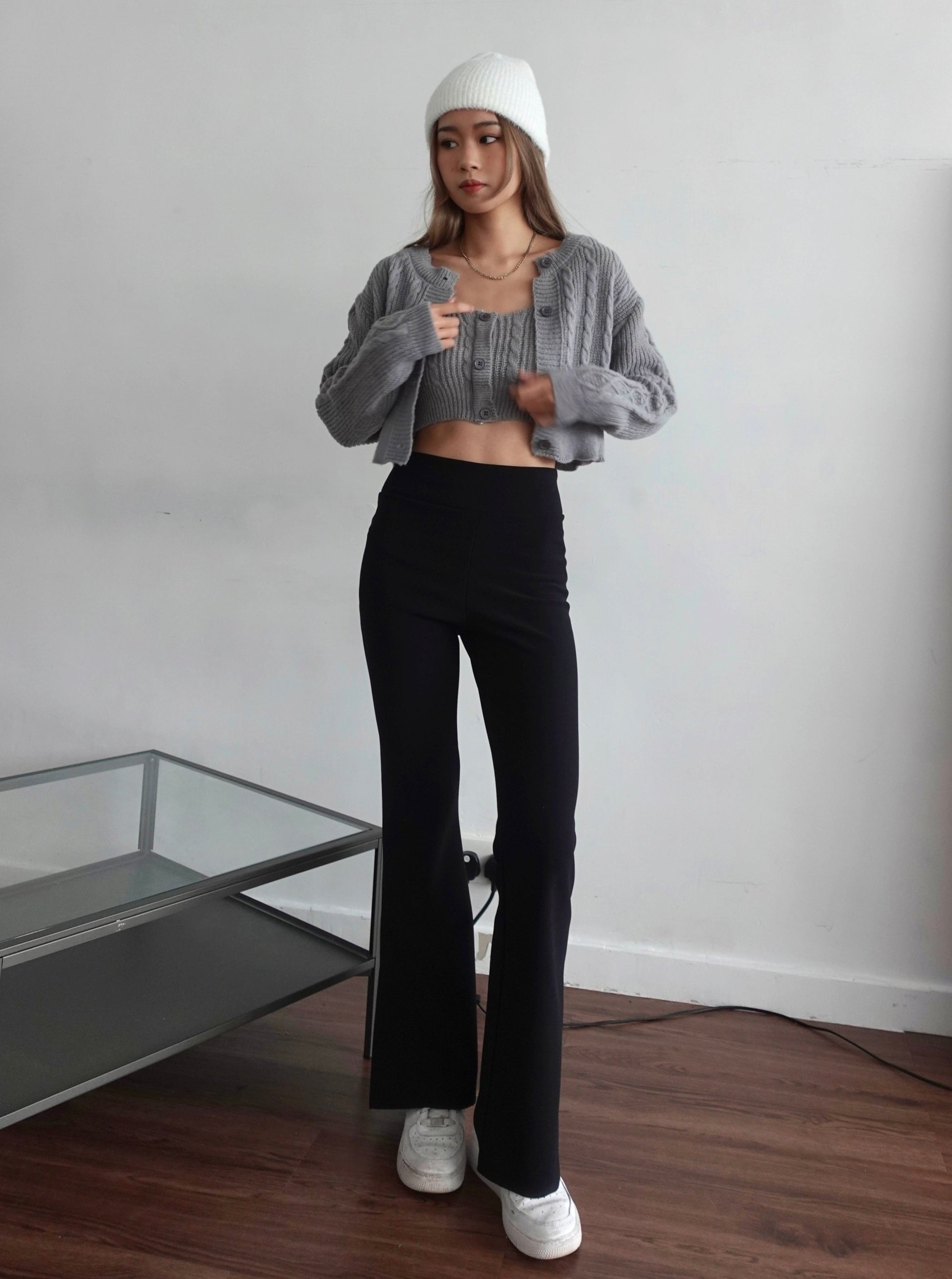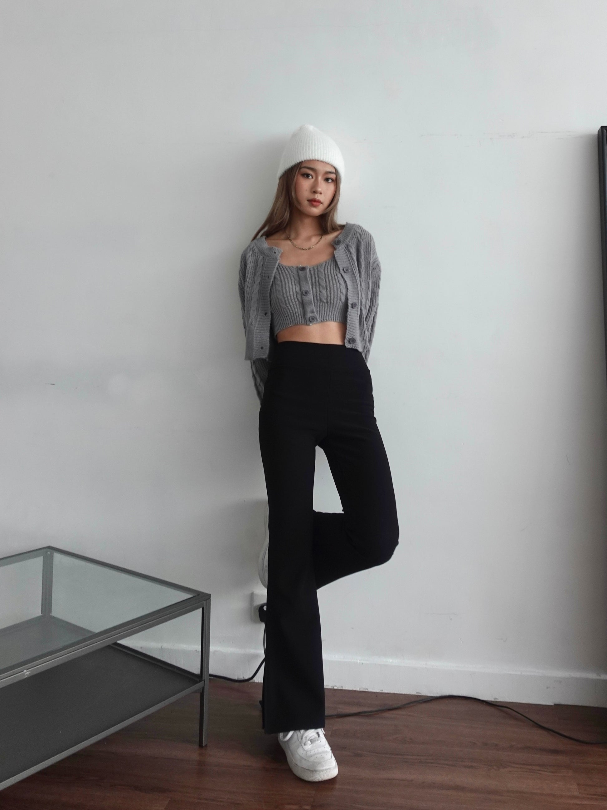 Free size ( Laid Flat Measurements ) Cardigan Chest 42cm Shoulder 38cm Waist 31cm Sleeve length 54cm Body length 39cm Knit vest Chest 31.5cm Waist 21.5cm body length 19.5cm |
