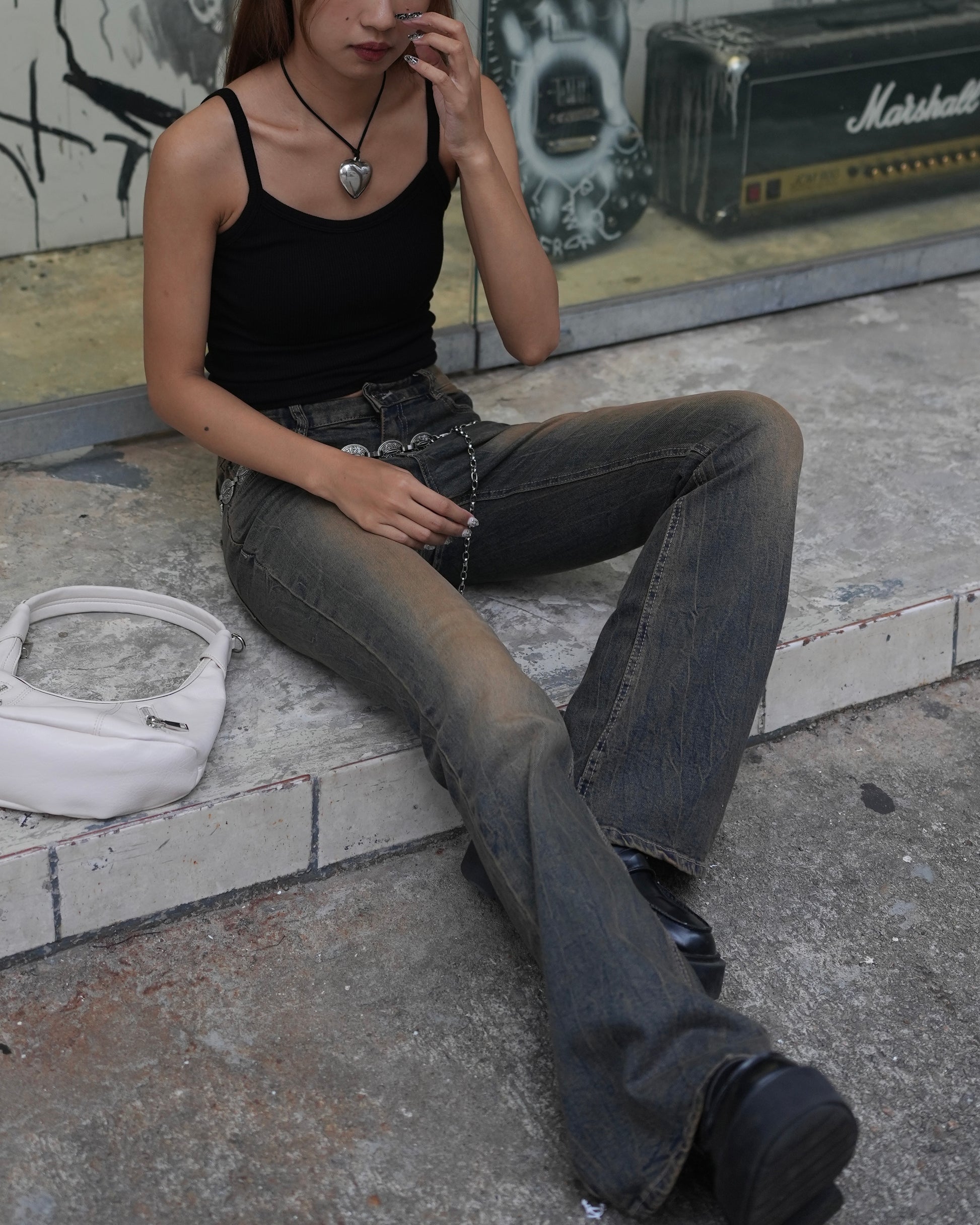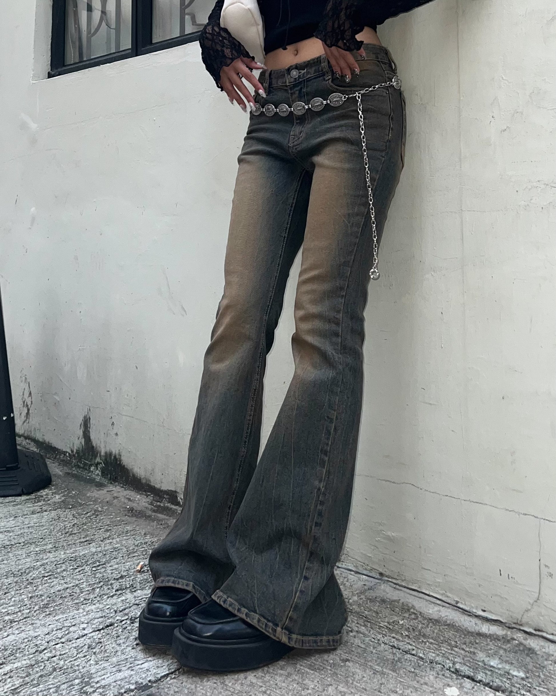 Vintage slit hem bootcut jeans